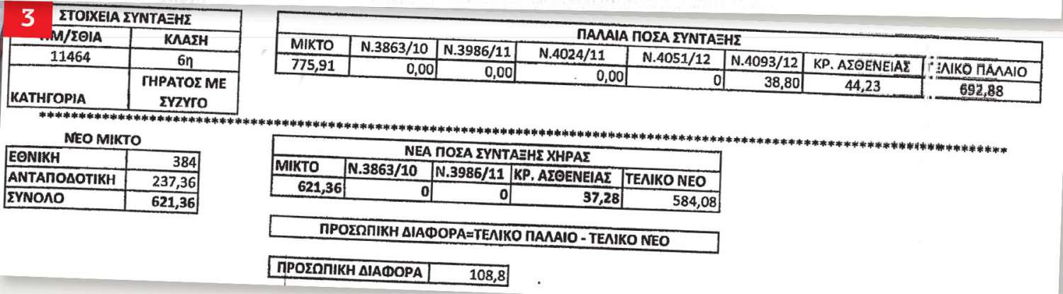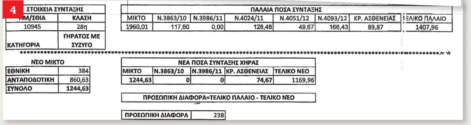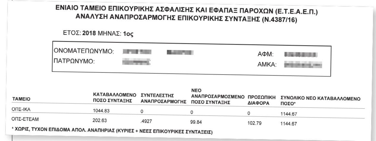 Σε αυτά αναφέρεται το νέο ποσό (αναπροσαρμοσμένη επικουρική) και στην κάτω σειρά αναφέρεται η προσωπική διαφορά.