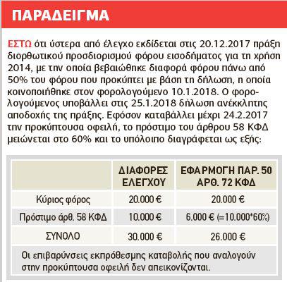 Σε όποιον φορολογούμενο ανταποκριθεί παρέχεται ως κίνητρο για την εξόφληση της προκύπτουσας οφειλής εντός 30 ημερών από την κοινοποίηση της πράξης η μείωση στο 60% του επιβληθέντος με την παραπάνω πράξη προστίμου.
