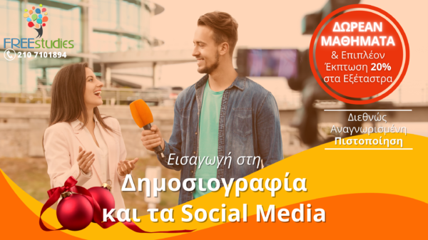 ONLINE Πιστοποιημένο Σεμινάριο: “Εισαγωγή στη Δημοσιογραφία και τα Social Media” – Η καριέρα στο χώρο της Δημοσιογραφίας και των Μέσων Κοινωνικής Δικτύωσης Ξεκινάει από εδώ!30 Νοέ 2023