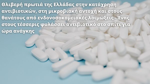 Θλιβερή πρωτιά της Ελλάδας στην κατάχρηση αντιβιοτικών, στη μικροβιακή αντοχή και στους θανάτους από ενδονοσοκομειακές λοιμώξεις – Ένας στους τέσσερις φυλάσσει αντιβιοτικό στο σπίτι για ώρα ανάγκης7 Δεκ 2023