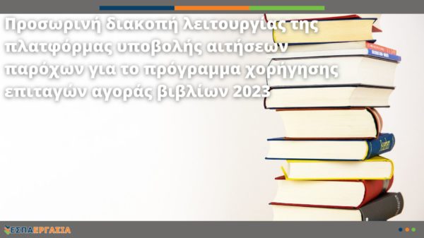Προσωρινή διακοπή λειτουργίας της πλατφόρμας υποβολής αιτήσεων παρόχων για το πρόγραμμα χορήγησης επιταγών αγοράς βιβλίων 202324 Αυγ 2023