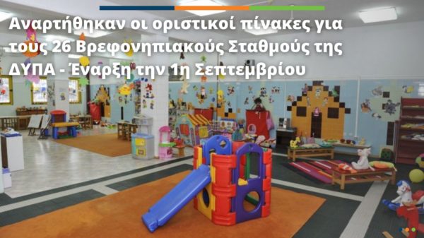 Αναρτήθηκαν οι οριστικοί πίνακες για τους 26 Βρεφονηπιακούς Σταθμούς της ΔΥΠΑ – Έναρξη την 1η Σεπτεμβρίου21 Ιούλ 2023