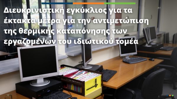 Διευκρινιστική εγκύκλιος για τα έκτακτα μέτρα για την αντιμετώπιση της θερμικής καταπόνησης των εργαζομένων του ιδιωτικού τομέα26 Ιούλ 2023