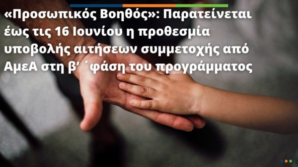 «Προσωπικός Βοηθός»: Παρατείνεται έως τις 16 Ιουνίου η προθεσμία υποβολής αιτήσεων συμμετοχής από ΑμεΑ στη β’ ΄φάση του προγράμματος12 Ιούν 2023