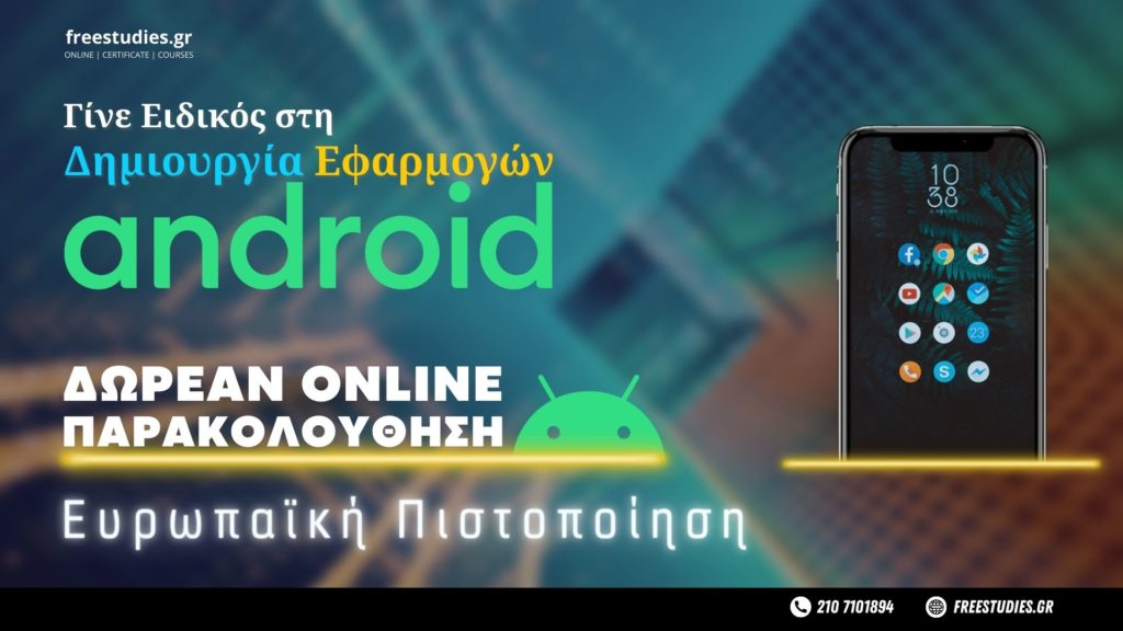 Κατανοήστε όλες τις πτυχές της δημιουργίας μιας ολοκληρωμένης εφαρμογής με χρήση του Android Studio και της γλώσσας προγραμματισμού Kotlin, ξεκινώντας από μηδενική βάση με το Μεταπτυχιακό Πρόγραμμα Εξειδίκευσης στη Δημιουργία Εφαρμογών Android , που προσφέρουν τα Ελληνικά Κέντρα Δια Βίου Μάθησης (ΕΛ.ΚΕ.ΔΙ.Μ.)!