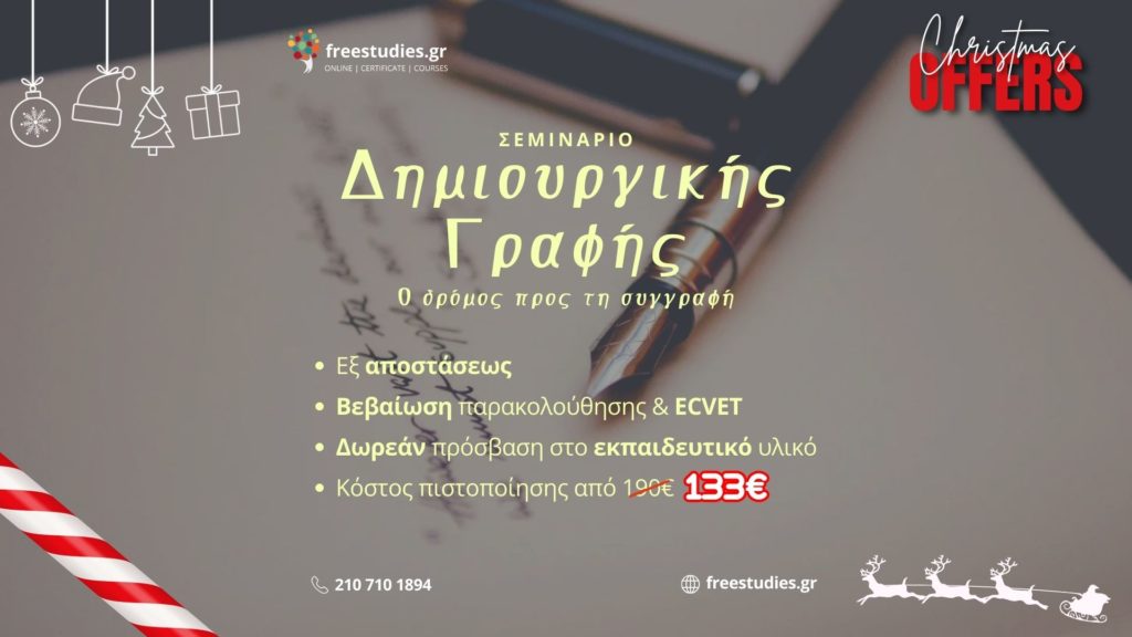 Το σεμινάριο «Σεμινάριο δημιουργικής γραφής – Ο δρόμος προς τη συγγραφή» απευθύνεται σε όσους επιθυμούν να εισχωρήσουν στον κόσμο της Λογοτεχνίας, της αφήγησης και της ανάλυσής της και να κάνουν την πρώτη τους συγγραφική απόπειρα.