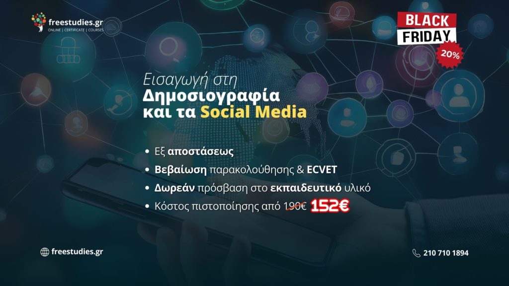 Το Μεταπτυχιακό Πρόγραμμα Εξειδίκευσης «Εισαγωγή στη Δημοσιογραφία και τα Social Media», που προσφέρουν τα Ελληνικά Κέντρα Δια Βίου Μάθησης (ΕΛ.ΚΕ.ΔΙ.Μ.), αποτελεί ένα πρόγραμμα σχεδιασμένο ώστε να παρέχει τις απαραίτητες γνώσεις που προσδιορίζουν την άσκηση του δημοσιογραφικού επαγγέλματος, καθώς και τις διεργασίες εκείνες που περιλαμβάνει το έργο του δημοσιογράφου στα διάφορα Μ.Μ.Ε. (έντυπος Τύπος, ραδιόφωνο, τηλεόραση, διαδίκτυο). Επιπλέον, αναπτύσσονται οι βασικές αρχές έρευνας, διασταύρωσης, τεκμηρίωσης, συγγραφής και δημοσίευσης περιεχομένου για όλα τα μέσα.