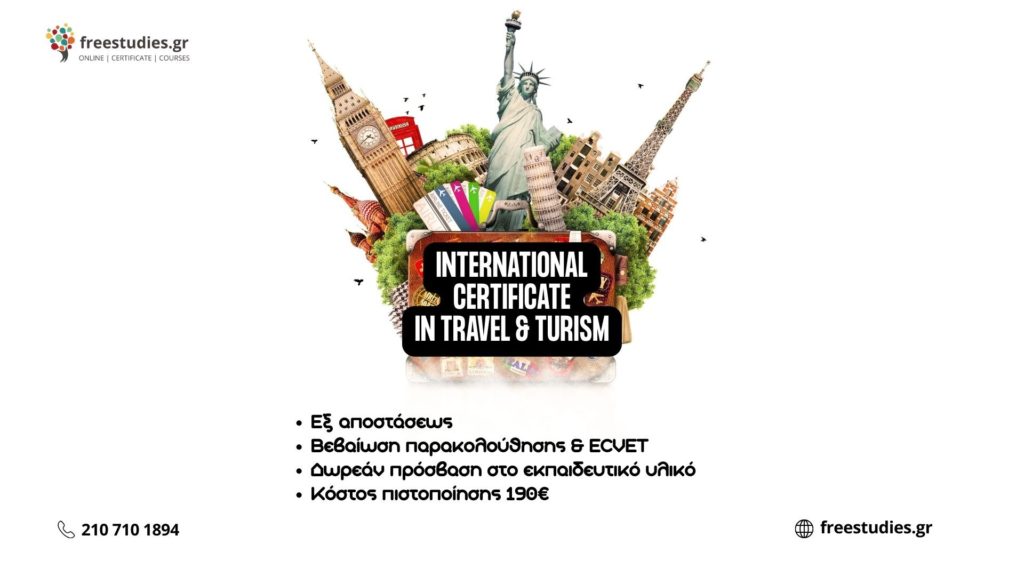 - Πιστοποίηση «International Certificate in Travel and Tourism» από το φορέα Vellum Global Educational Services.