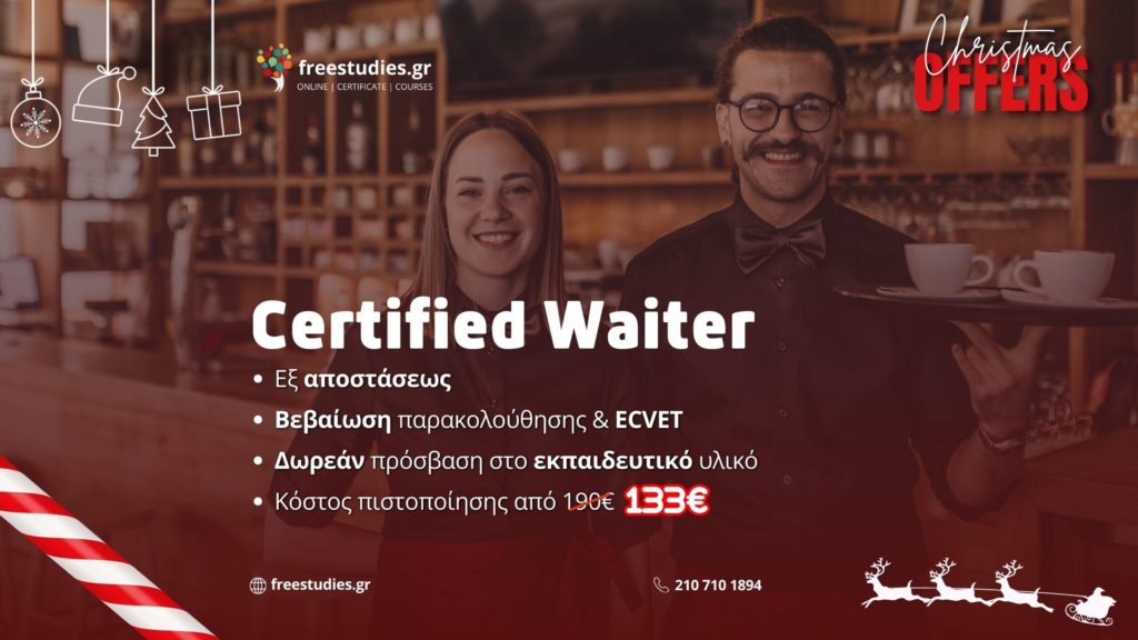 Το πιστοποιητικό εξειδικευμένων δεξιοτήτων, Vellum Certificate for Waiters (Εξειδικευμένος Υπάλληλος Εστίασης – Σερβιτόρος), που προσφέρουν τα Ελληνικά Κέντρα Δια Βίου Μάθησης (ΕΛ.ΚΕ.ΔΙ.Μ.), απευθύνεται σε όσους επιθυμούν να απασχοληθούν ή ήδη εργάζονται στον τομέα της εστίασης και των τουριστικών επαγγελμάτων, σε έναν από τους πλέον περιζήτητους επαγγελματικούς κλάδους, με συνεχώς νέες προοπτικές απασχόλησης.