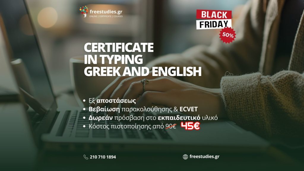 Στην σημερινή εποχή η εκμάθηση της δακτυλογραφίας ελληνικής και αγγλικής, παίζει σημαντικό ρόλο σε οποιανδήποτε καριέρα. Με το Πρόγραμμα Εξειδίκευσης Vellum Certificate in Typing Greek and English, που προσφέρουν τα Ελληνικά Κέντρα Δια Βίου Μάθησης (ΕΛ.ΚΕ.ΔΙ.Μ.), έχετε τη δυνατότητα να αποκτήσετε μία δεξιότητα η οποία κρίνεται πολύτιμη, όχι μόνο σε επαγγελματίες γραμματείς αλλά και σε λοιπά γραμματειακά και διοικητικά στελέχη επιχειρήσεων, καθώς αναμφισβήτητα συντελεί σε μια πιο παραγωγική και εποικοδομητική εργασία.