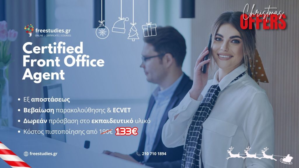Ο τουρισμός υπολογίζεται ότι θα δημιουργήσει τουλάχιστον 220.000 θέσεις εργασίας -τις περισσότερες από κάθε άλλο κλάδο- μέσα στην επόμενη 10ετία (έρευνα ΣΕΒ – McKinsey). To αρνητικό στοιχείο της «εποχικότητας» υπάρχουν πιθανότητες να ξεπεραστεί, καθώς βασικός στόχος της ακολουθούμενης πολιτικής είναι να διευρυνθεί η σεζόν και να διαφοροποιηθεί το προϊόν (ιατρικός, θρησκευτικός τουρισμός, αγροτουρισμός κ.λπ.). Το πιστοποιητικό Vellum Hospitality Services Skills Front Office Agent, από τα Ελληνικά Κέντρα Δια Βίου Μάθησης (ΕΛ.ΚΕ.ΔΙ.Μ.), στοχεύει στην πιστοποίηση των απαραίτητων εργασιών για την υποδοχή των πελατών σε κάποιο τουριστικό κατάλυμα, αλλά και στην πλήρη ενημέρωση, εξοικείωση και προσομοίωση των καθημερινών εργασιών που έχει να διαχειριστεί το Στέλεχος σε αυτή τη θέση.
