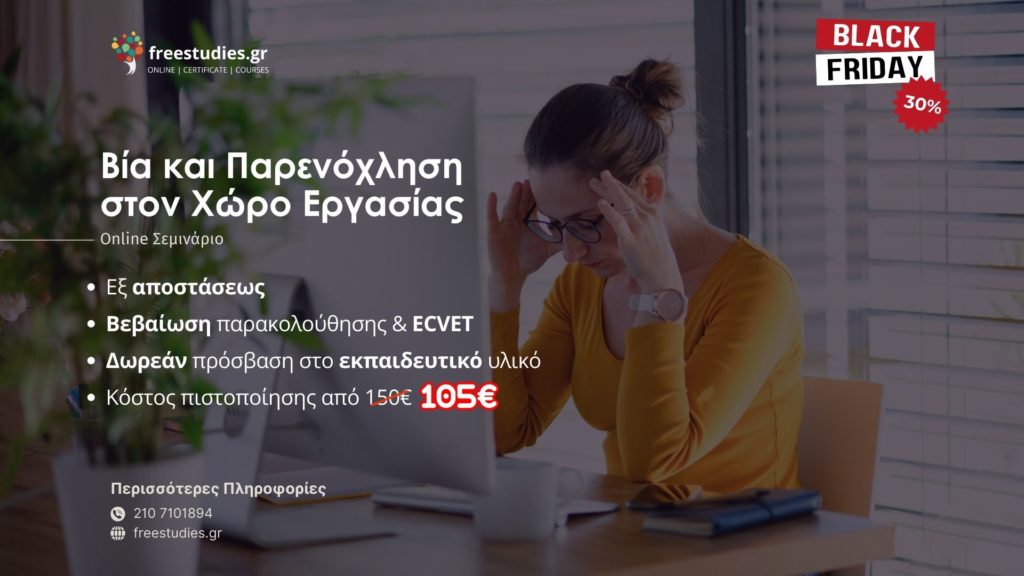 Βία και Παρενόχληση στον Χώρο Εργασίας – On-line Moριοδοτούμενο Σεμινάριο