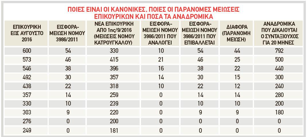 Αυτές οι μειώσεις ισχύουν από 1/6/2016. Το άθροισμα από τότε είναι μικρότερο, αλλά οι περικοπές επιβάλλονται επί του παλιού αθροίσματος.